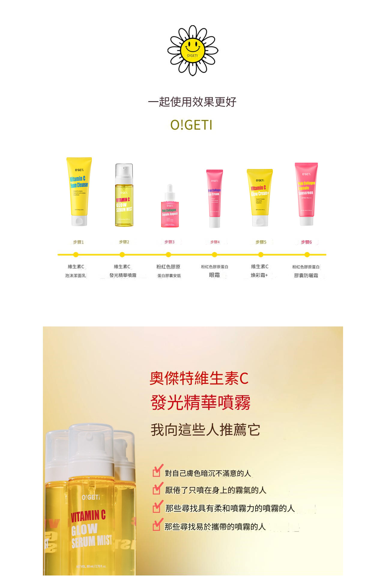 01 均勻膚色效果讓肌膚閃光! 噴著⽤的維⽣素美⽩精華液