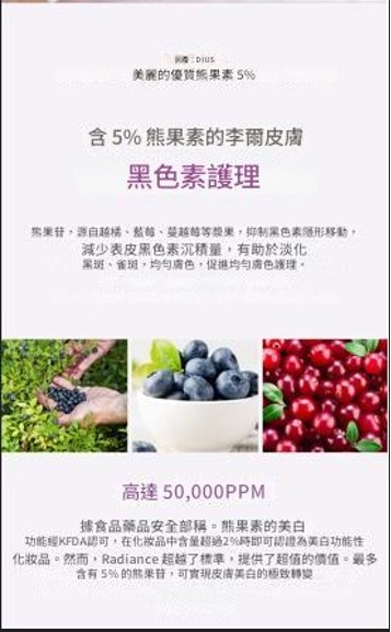 富含優質熊果素成份高達5%。